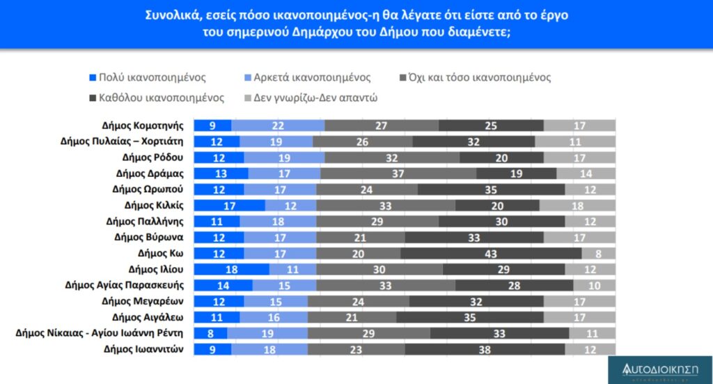 Παράλληλα, η Ρόδος εμφανίζει το υψηλότερο ποσοστό ικανοποίησης σε σχέση με τους νησιωτικούς Δήμους Βορείου και Νοτίου Αιγαίου, όπως προκύπτει από την έρευνα.