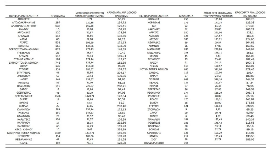 Στην Π.Ε. Ρόδου σήμερα βρέθηκαν 170 νέα κρούσματα. Στην Π.Ε. Κω βρέθηκαν 93 νέα κρούσματα, στην Π.Ε. Καλύμνου βρέθηκαν 29 νέα κρούσματα και στην Π.Ε. Καρπάθου 17 νέα κρούσματα.