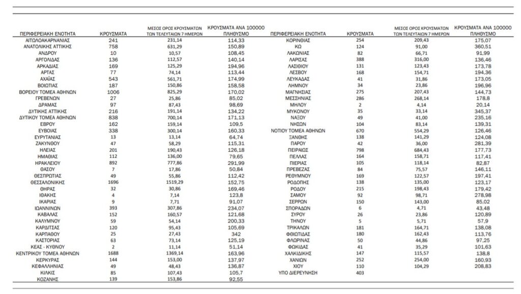 Ο ΕΟΔΥ σήμερα 23/02 ανακοίνωσε 16.962 νέα κρούσματα.