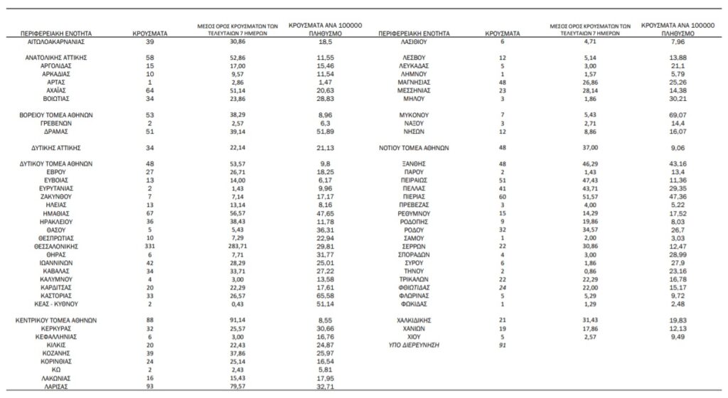 Ο ΕΟΔΥ σήμερα 24/09 ανακοίνωσε 2.046 νέα κρούσματα.