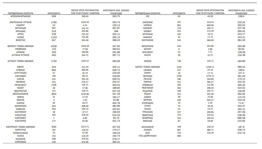 Στην Π.Ε. Ρόδου σήμερα βρέθηκαν 552 νέα κρούσματα. Στην Π.Ε. Κω βρέθηκαν 82 νέα κρούσματα, στην Π.Ε. Καλύμνου 58 νέα κρούσματα και στην Π.Ε. Καρπάθου 7 νέα κρούσματα.