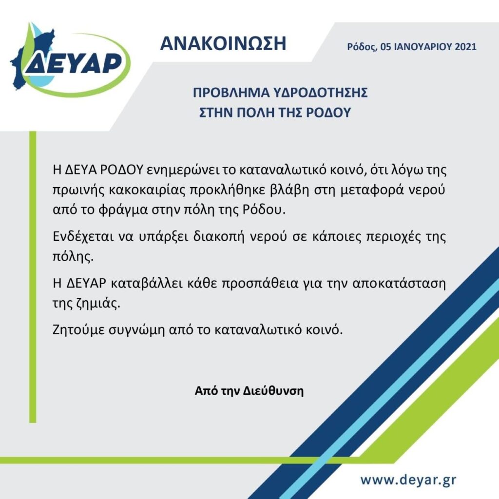 Δείτε την ανακοίνωση της ΔΕΥΑΡ: