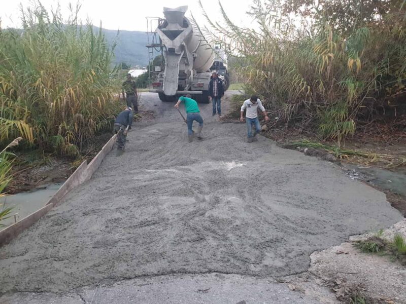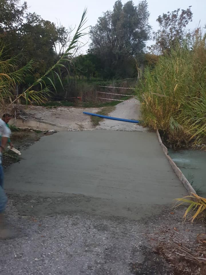 Συγκεκριμένα, συνεχίζουμε να αποκαθιστούμε τις ζημιές που είχαν προκληθεί από την θεομηνία. κατασκευάσαμε με οπλισμένο σκυρόδεμα, από τις προμήθειες της ενότητας μας, προστατευτικά Κολωνάκια στην κεντρική γέφυρα της Αρχίπολης για την ασφάλεια και την προστασία των πεζών και των οχημάτων.